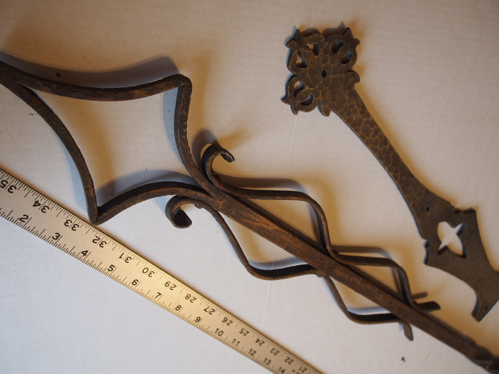 Title (ebay affiliate link): 2 Antique Old Wrought Iron Arrows Pointer Scroll Fleur de Lis Ornate Salvage 38"