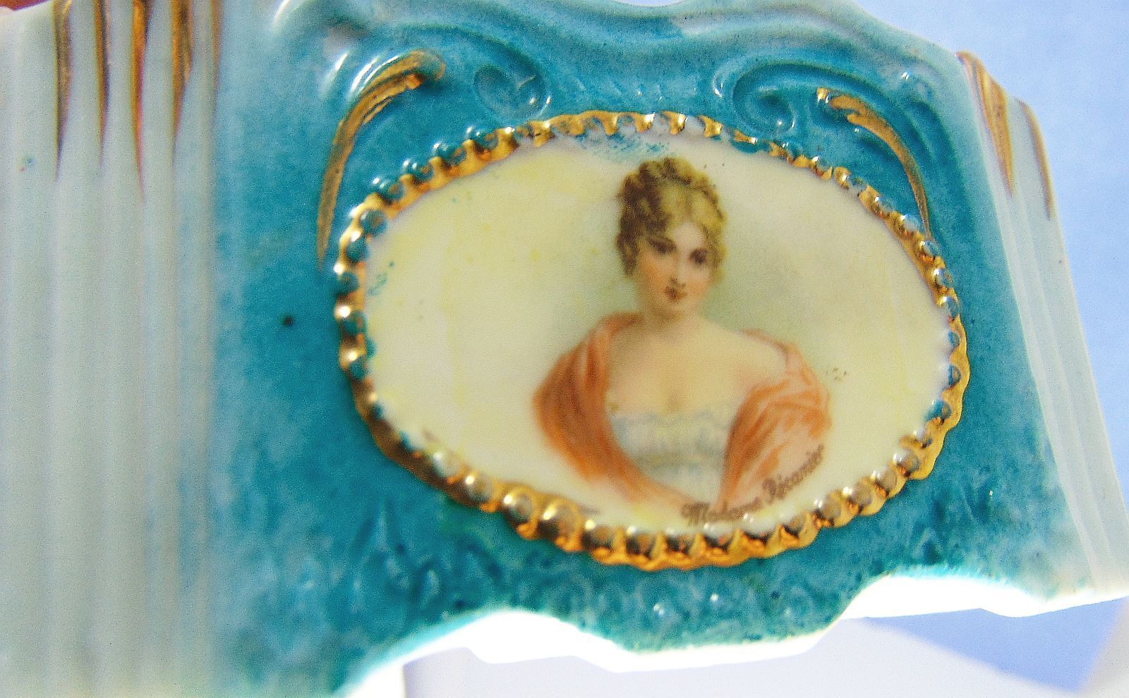 GERMAN VANITY SCHAFER VATER GOLD GILT PORTRAIT GIRL MINIATURE BATH ANTIQUE HOME