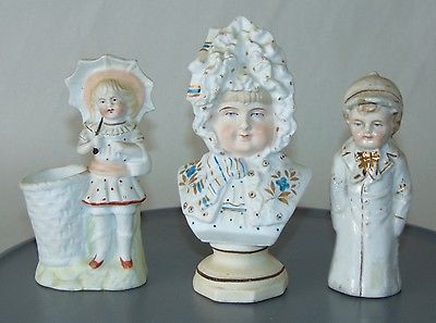 THREE! ANTIQUE Figurines BISQUE Victorian CHILDREN