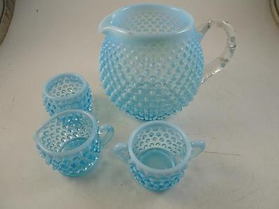Vintage Fenton Hobnail Art Glass Blue Opalesent Miniature Pitcher Creamer Sugar