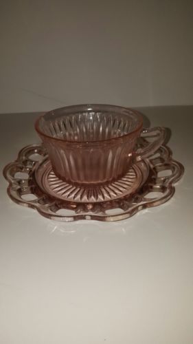 Title (ebay affiliate link): PINK OLD COLONY LACE EDGE DEPRESSION CUP AND SAUCER Great Condition..