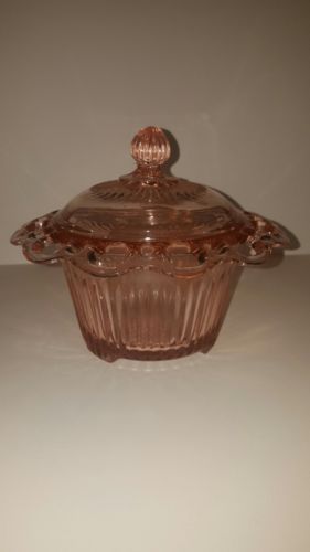 Title (ebay affiliate link): PINK DEPRESSION OLD COLONY/OPEN LACE/LACE EDGE ROUND FOOTED COMPORT W/LID