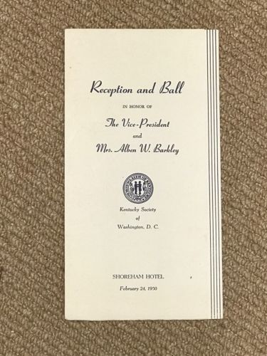 Title (ebay affiliate link): Alben Barkley Reception Kentucky Society of Washington DC 1950 Shoreham Hotel