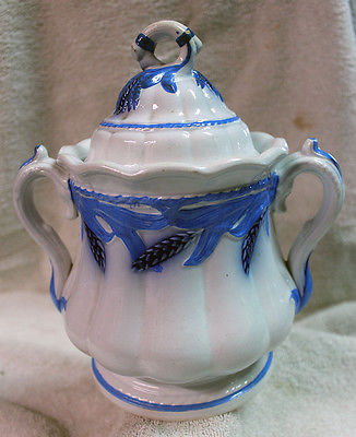 Staffordshire Ironstone Ceres Blue Wheat Elsmore & Forster Sugar Bowl 1850