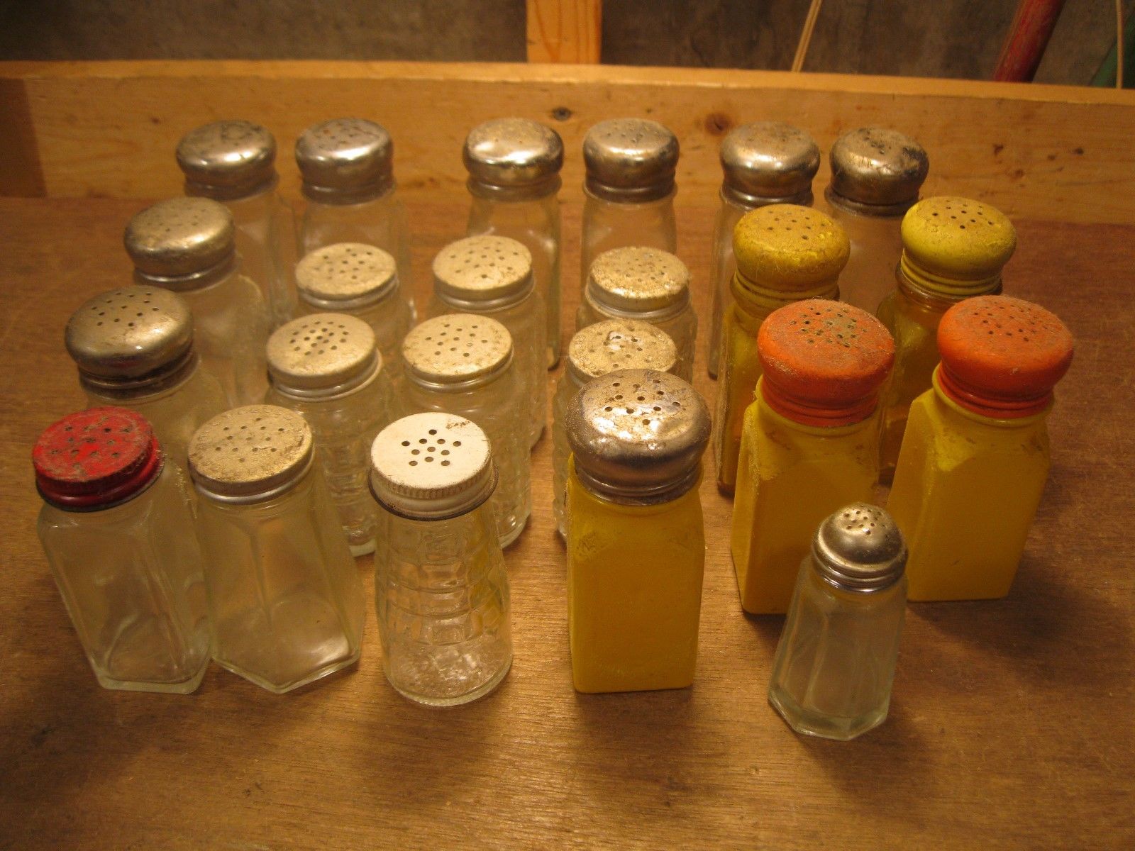 antique salt pepper shakers lot vintage pressed glass repurpose kitchen display