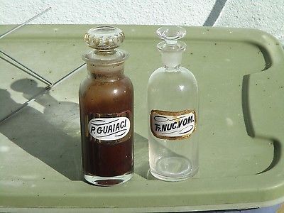 Title (ebay affiliate link): Tinctura Nucis Vomicae label under glass pharmacy bottle - "Tr.Nuc.Vom."