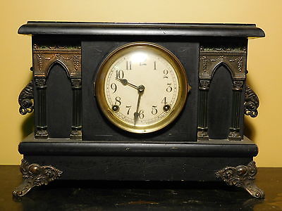Antique Sessions Clock Company Pillar Style Mantle Clock with Key & Pendulum