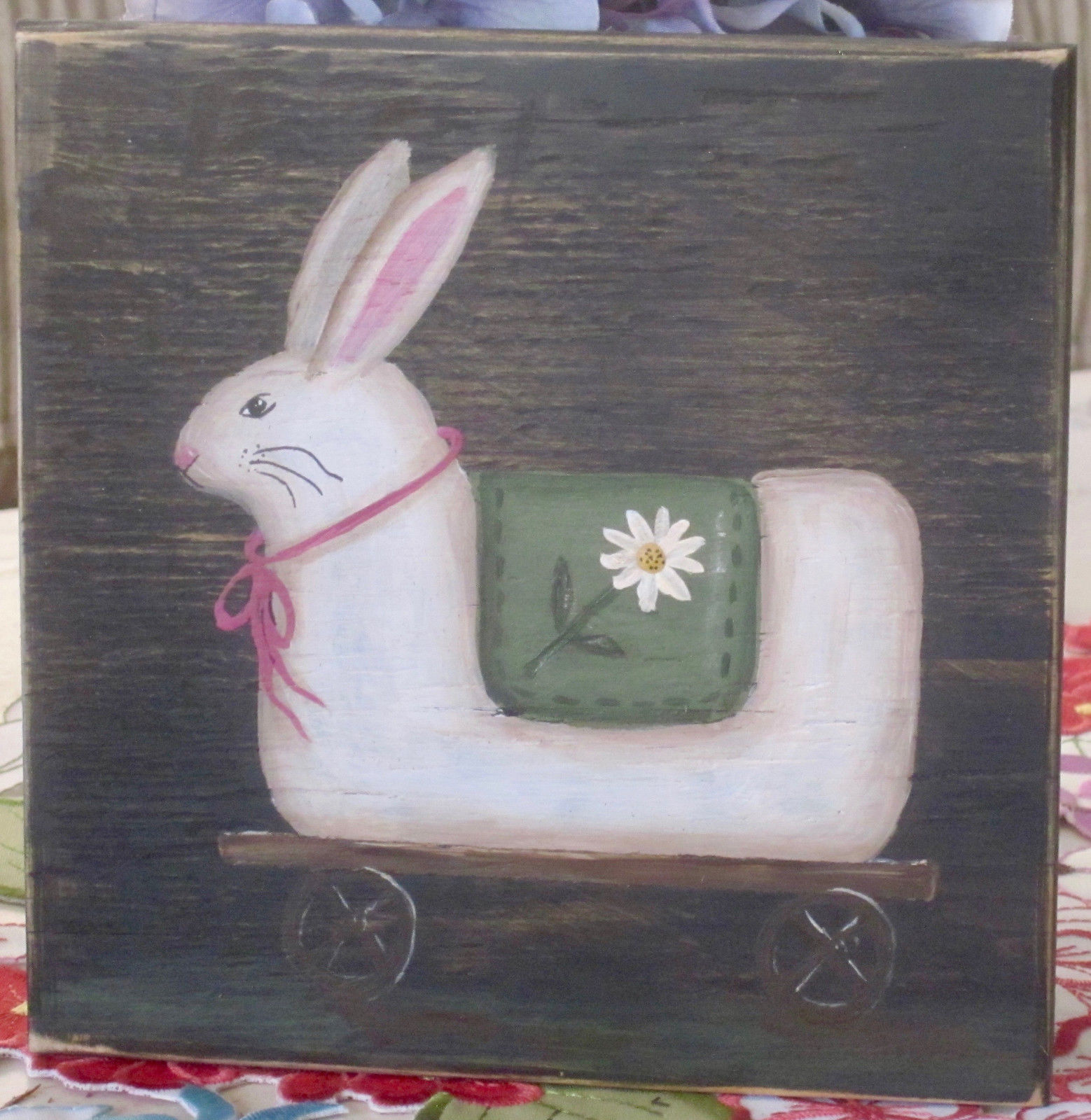 Title (ebay affiliate link): *~*PRIMITIVE*~* HP FOLK ART PRIM BUNNY PULL TOY *~* DAISY *~* EASTER *~* BOARD