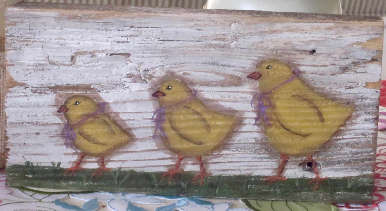 Title (ebay affiliate link): *~*PRIMITIVE*~*HP FOLK ART PRIM CHICKS *~* EASTER *~* OLD RECLAIMED WOOD