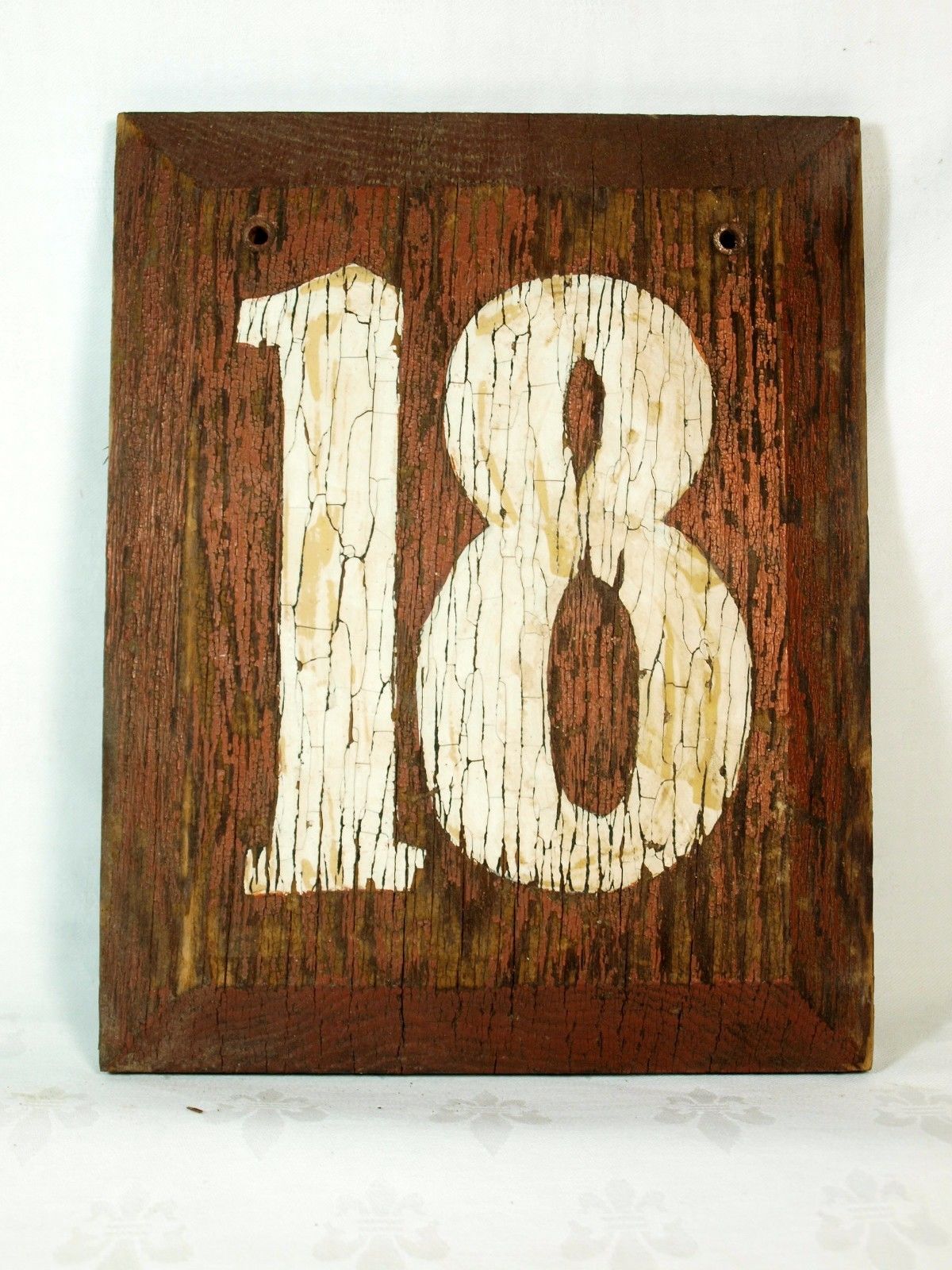 Title (ebay affiliate link): Antique Primitive RUSTIC Lodge CABIN #18 Painted Wood Sign - Number 18