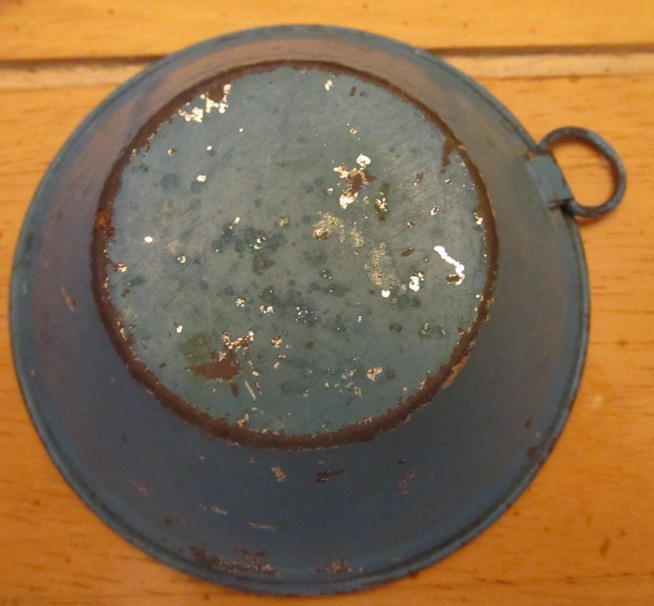 antique primitive tin wash basin bowl miniature original paint doll house 1800