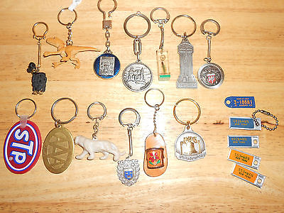 Collection of 13 Assorted Vintage Keychains and 5 Mini License Plate Chains