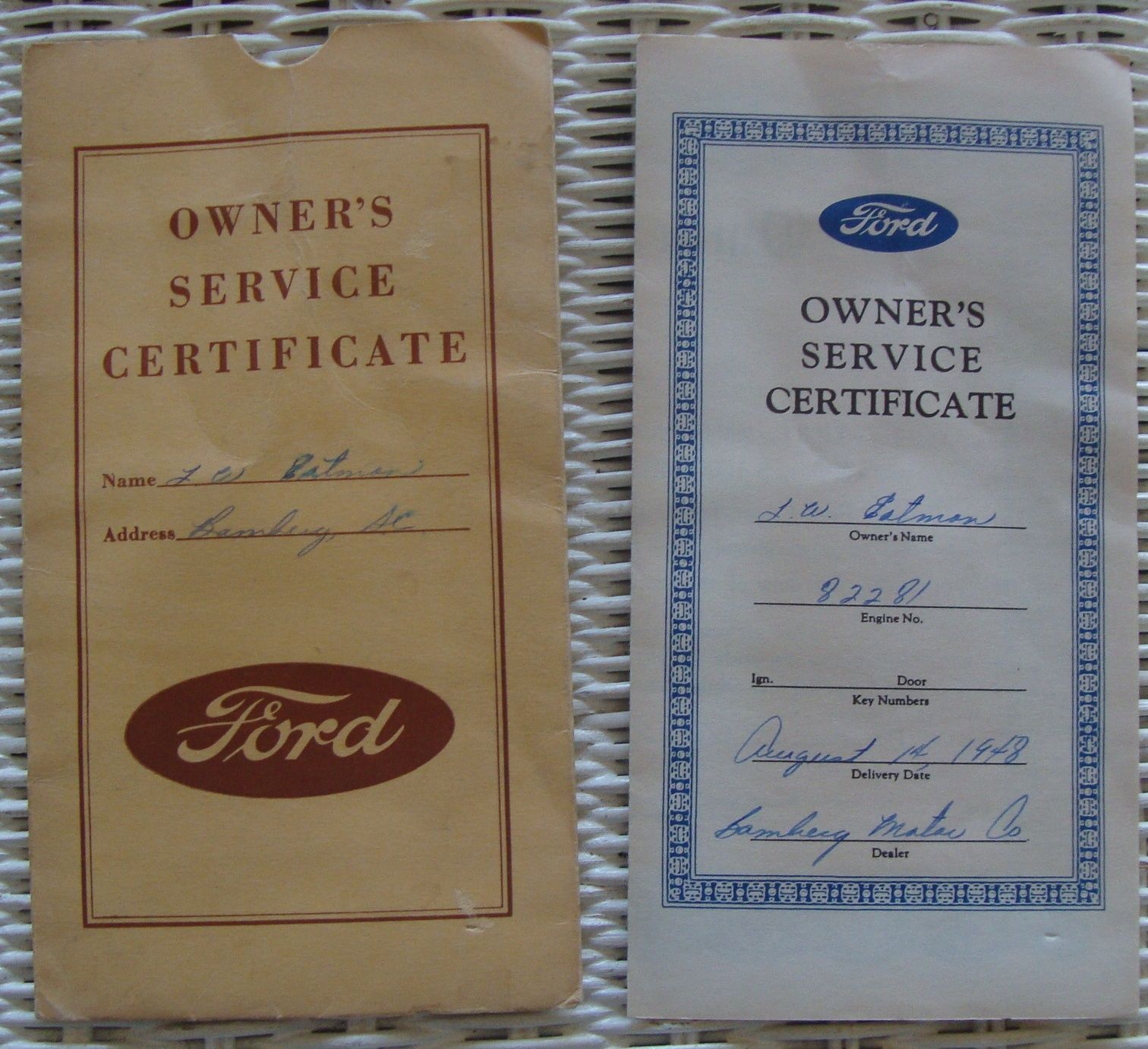 1948 Ford Owner''s Service Certificate & Envelope