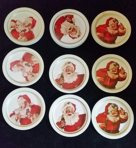 Title (ebay affiliate link): Vintage Coca Cola Santa Claus Metal Coasters Set LOT of 28 3 Styles MINT