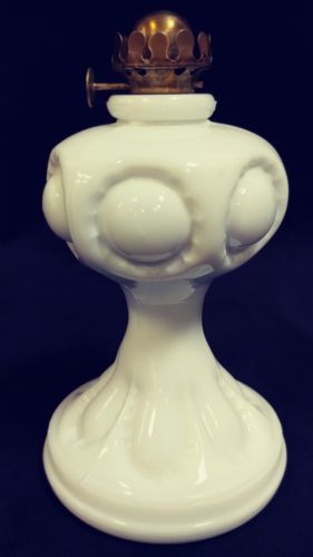Miniature Oil Lamp Bullseye Pattern Milkglass No Chimney