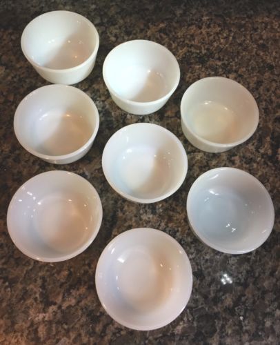 Title (ebay affiliate link): Vtg. Anchor Hocking Fire King Set of 8 Milk Glass Small Custard Bowls. EUC
