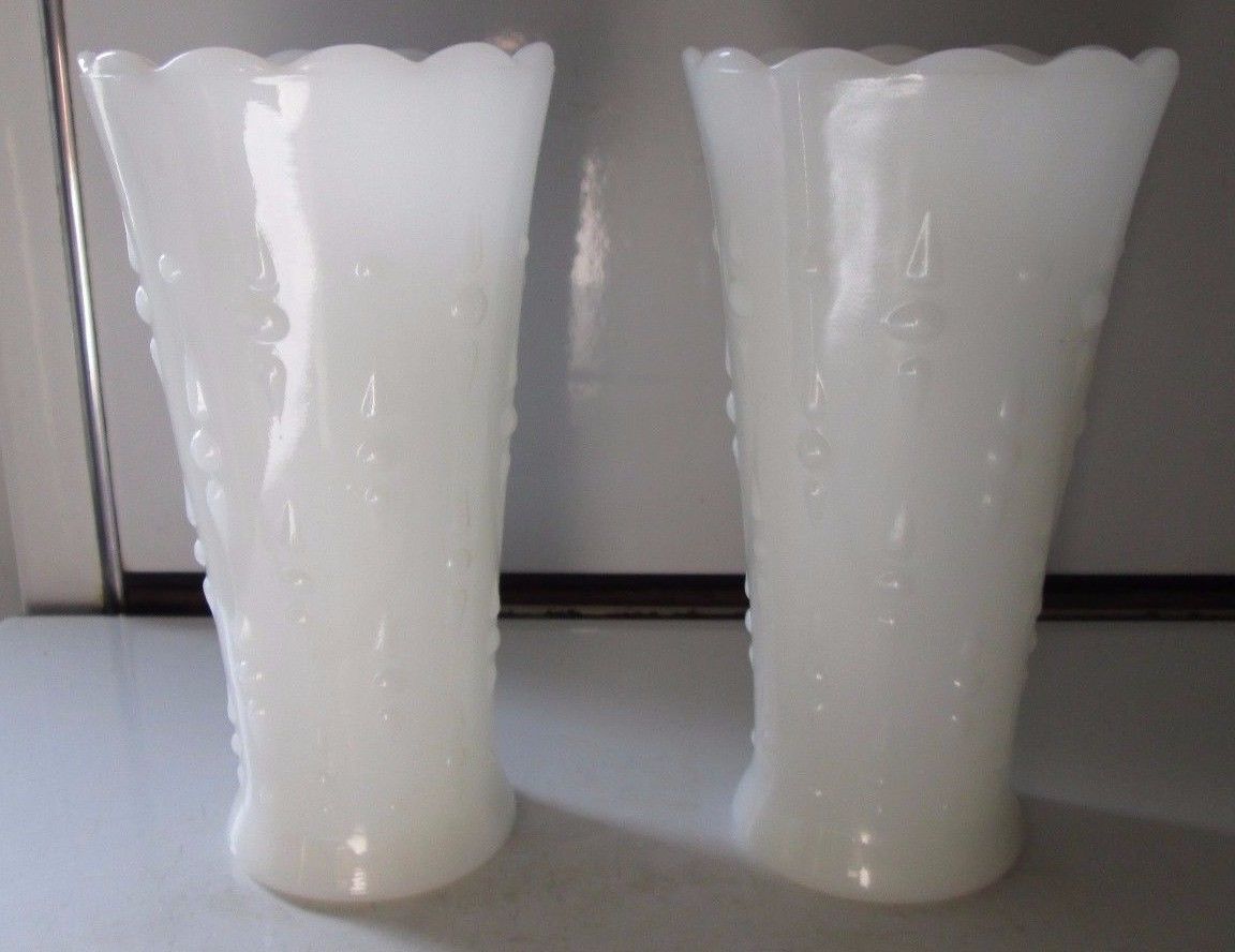 Vintage White Milk Glass Hobnail Vase set of 2 Matching 7"