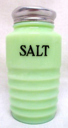 Title (ebay affiliate link): Large 5" Jadeite Green Milk Glass Beehive Ribbed Salt Shaker w/Metal Cap (579)