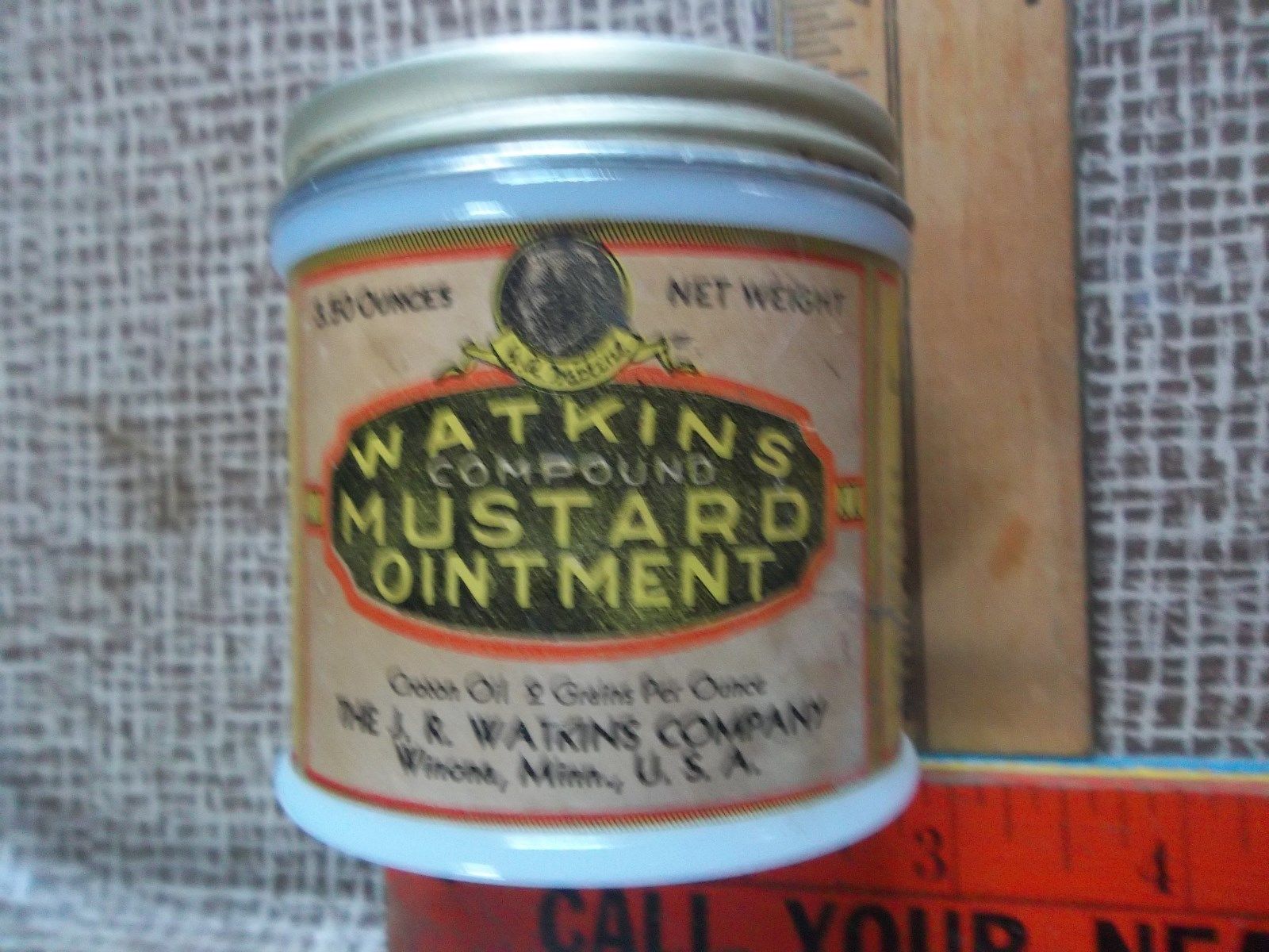 Title (ebay affiliate link): Vintage Quack Medicine - Watkins Compound Mustard Ointment Milk Glass Jar