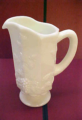 Title (ebay affiliate link): Westmoreland Vintage Paneled Harvest Grape White Milk Glass Pitcher 8 1/4" Tall