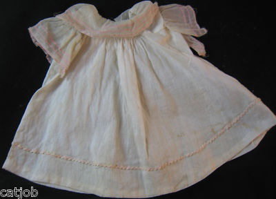 Antique Doll Dress, Cotton & Organza w/ Pink Trim!