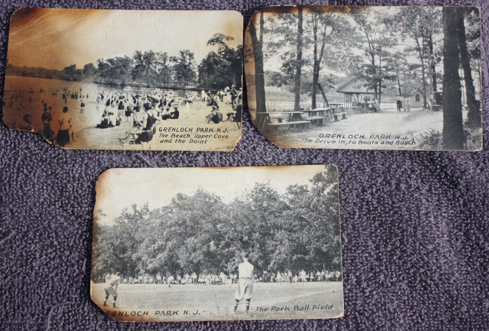 Lot of 3 Grenloch Lake Park Sewell NJ Postcards Baseball Field, Rare but Damaged