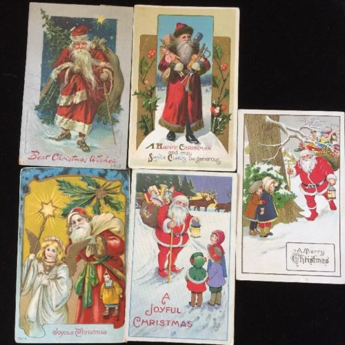 Title (ebay affiliate link): 5 Antique CHRISTMAS POSTCARDS Depicting OLD SANTA With RED ROBE