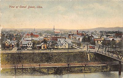 C17/ Canal Dover Ohio Postcard 1908 Birdseye View Homes Trolley Bridge