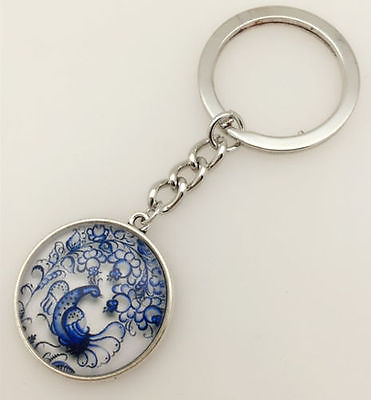 Vintage Phoenix Cabochon Tibetan silver Glass Chain Pendant Metal Key Ring