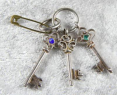 white metal keys x 3 on a ring no chain vintage costume jewellery