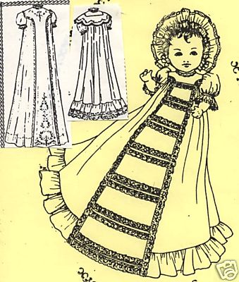 Title (ebay affiliate link): 15-17"ANTIQUE BABY DOLL CHRISTENING DRESS/GOWN PATTERN