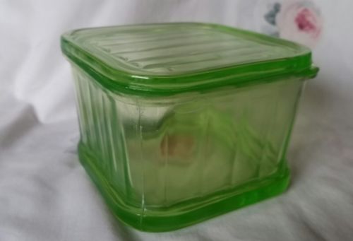 Title (ebay affiliate link): Vtg Green Depression Glass Ribbed Rectangular Refrigerator Dish w/Lid