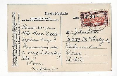 Syria 1928 PC Cover to US, 4.50p Surcharge Solo