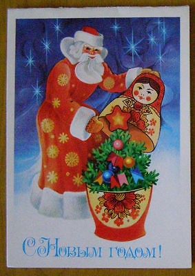 Title (ebay affiliate link): 1984 SOVIET NEW YEAR FLIP POSTCARD Santa matryoshka art. Lyubeznov S 1292a