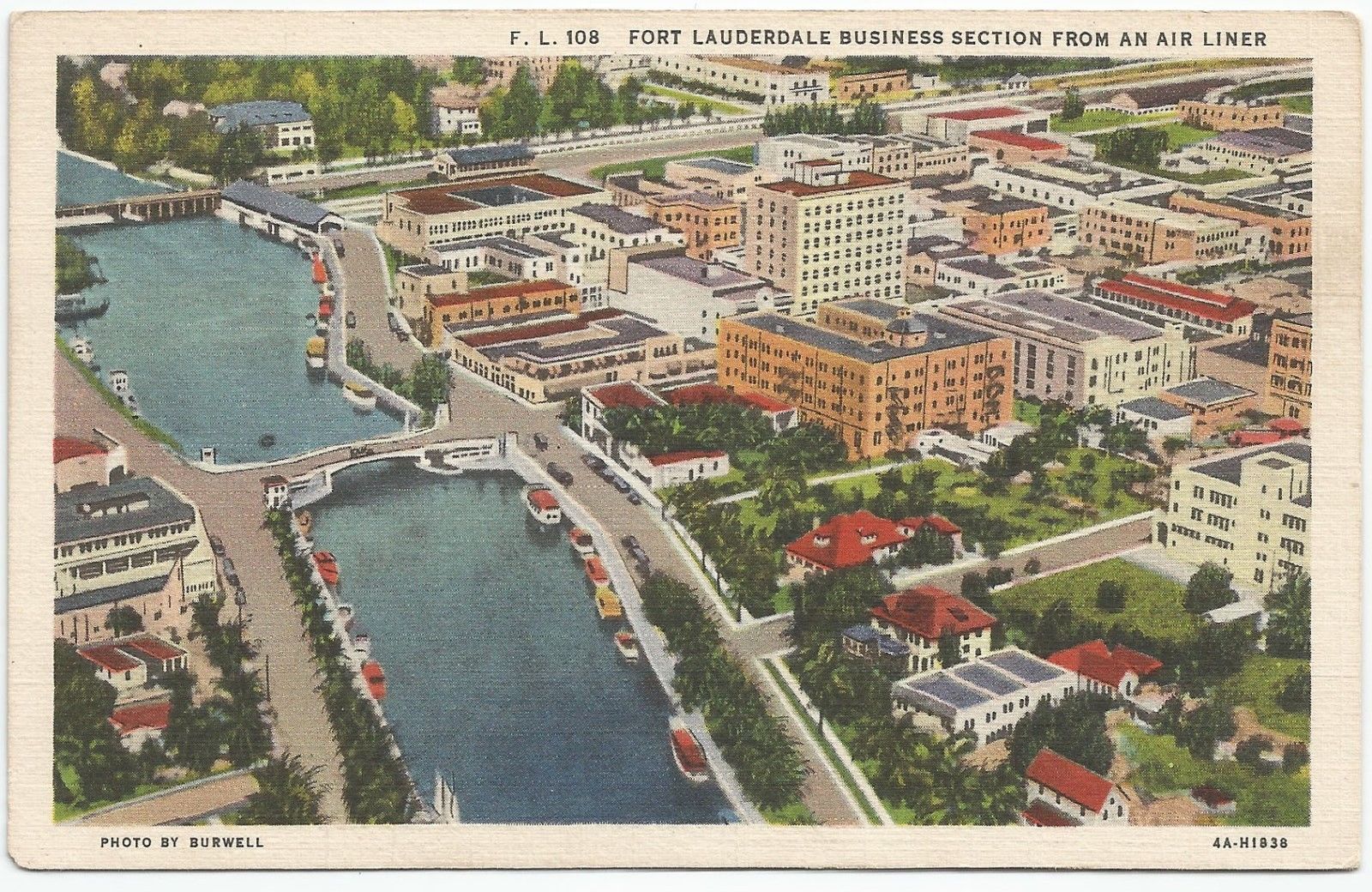 Vintage Florida Postcard. Fort Lauderdale Business Section from an Air Liner.