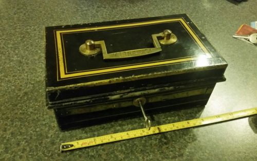 Hobbs and co cash box with key. antique.