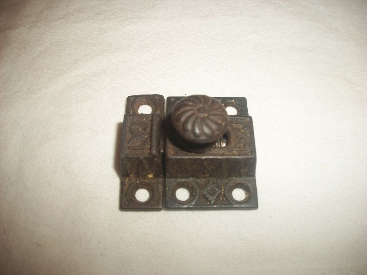 Title (ebay affiliate link): Small Ornate Antique Cabinet Door Metal Latch Button 1-1/2" by 1-1/2"