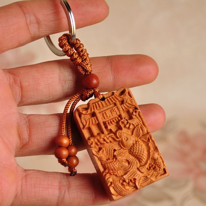 Title (ebay affiliate link): China wood Carving Fengshui Wealth fish statue key chain Praying Pendant K2