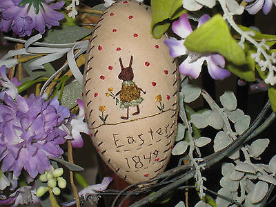 Primitive Easter Sampler Egg~1849 Rabbits & Tulips ~ Folk Art Needlework