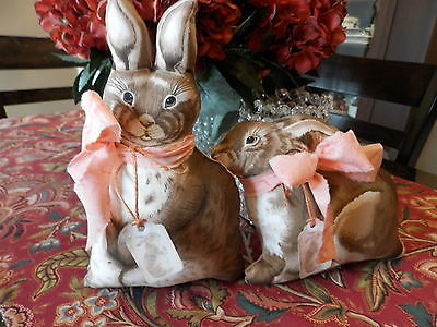 Primitive Vintage Brown Easter Spring Bunny Rabbit Pillows !! Two Pillow dolls