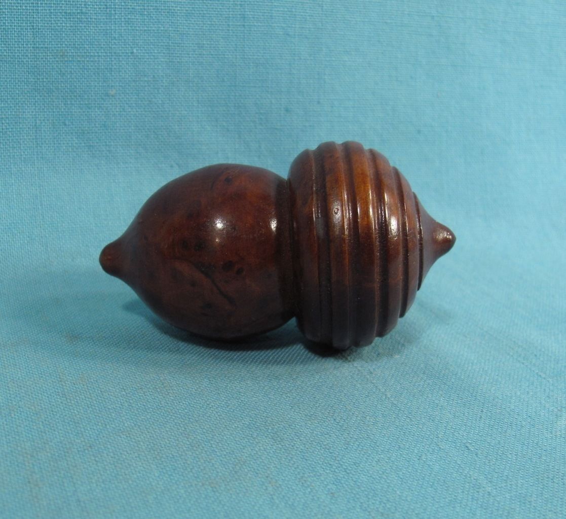 Early BURL WOOD - Wooden Large Acorn Sewing Kit - SEE MY OTHER OLD SEWING ITEMS!