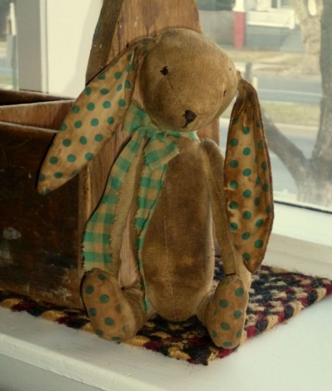 Title (ebay affiliate link): Primitive Feed Sack Rabbit Doll ~ prim bunny rabbit made from vintage feed sack