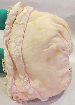 Antique Pink Silk Bonnet w/Lining For Doll, 5-6" Opening