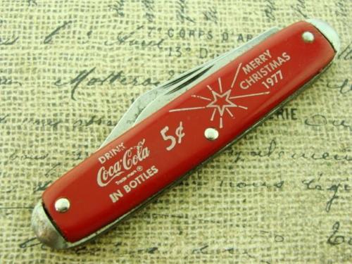"77 CHRISTMAS USA COCA COLA COKE FOLDING POCKET KNIFE HUNTING VINTAGE KNIVES NR