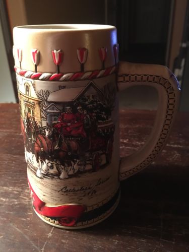 Title (ebay affiliate link): BUDWEISER 1988 Clydesdale Annual HOLIDAY BEER STEIN Mug MINT Anheuser Busch