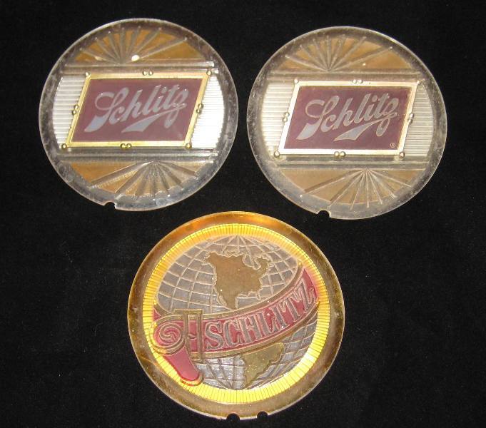 Set (3) vintage SCHLITZ BEER plastic LIGHT FIXTURE PANELS emblems