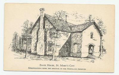 Vintage Sketch State House St. Mary''s City MD Artist Signed POSTCARD