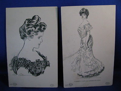 Title (ebay affiliate link): TWO 1906 ANTIQUE BLACK AND WHITE CHARLES DANA GIBSON POSTCARDS