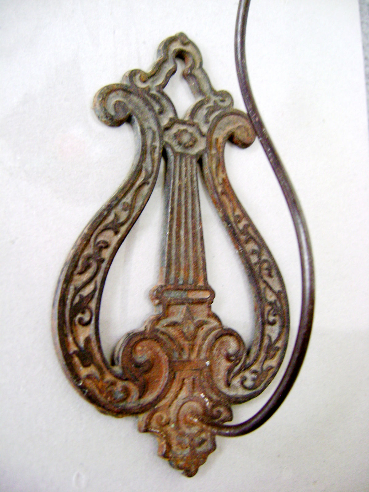 Title (ebay affiliate link): Vintage Iron Wall Mountable Lyre with Spike for Bill, Receipt, Note Holder