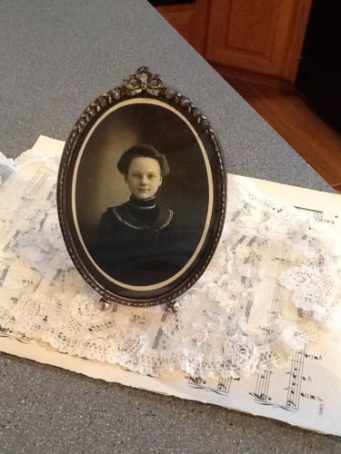 Antique Vintage Oval Picture Frame Bow At Top Old Woman Photo